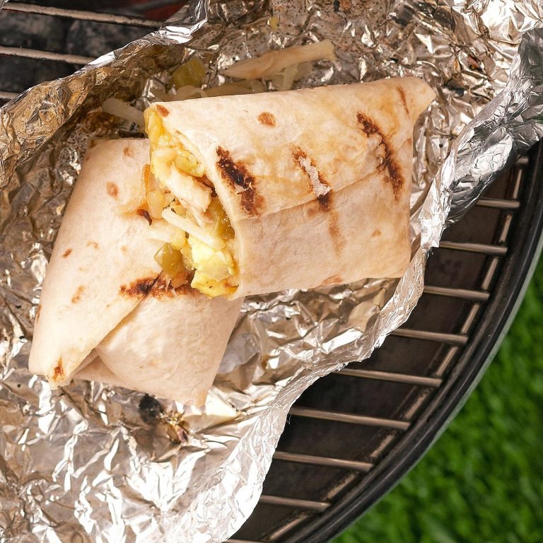 - Prepare grill (with a cover): For a charcoal grill, arrange medium-hot coals around edge of grill. Test for medium heat above center of grill. Place foil-wrapped burritos on grill rack over center of grill, stacking slightly, if necessary. Cover and heat about 15 minutes or until heated through, turning and rearranging once halfway through grilling. (For a gas grill, preheat grill. Reduce heat to medium. Adjust for indirect cooking and heat as above.) Serve burritos with salsa.