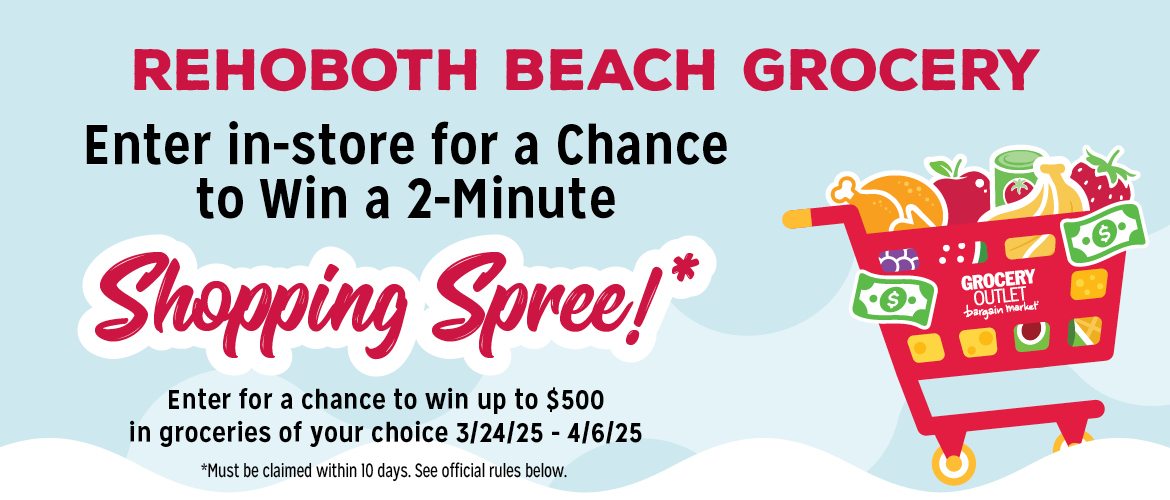 The Rehoboth Beach Grocery Outlet “Win a 2-Minute Shopping Spree” Sweepstakes (“Sweepstakes”) is sponsored and administered by Grocery Outlet, 5650 Hollis Street, Emeryville, CA 94608 (“Sponsor”).
