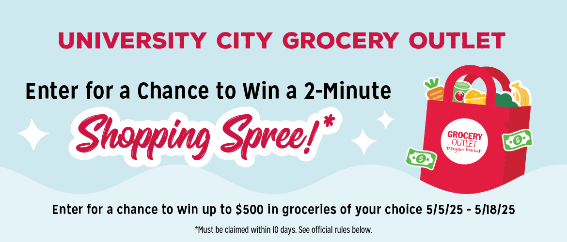 The University City Grocery Outlet “Win a 2-Minute Shopping Spree” Sweepstakes (“Sweepstakes”) is sponsored and administered by Grocery Outlet, 5650 Hollis Street, Emeryville, CA 94608 (“Sponsor”).