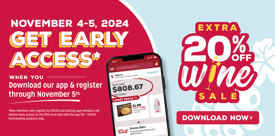 Get Early Access to our Wine Sale when you download and register for our mobile app by 11/5/24.