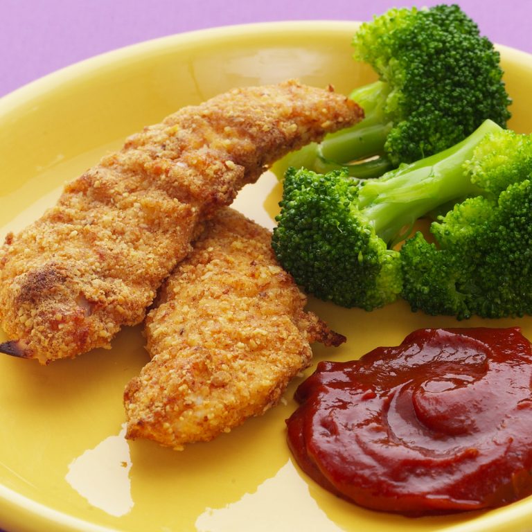 Instead of batter-dipped, deep-fried nuggets, we coat chicken tenders in a seasoned almond and whole-wheat flour crust and then oven-fry them to perfection. With half the fat of standard breaded chicken tenders, you can enjoy to your (healthy) heart’s content.
